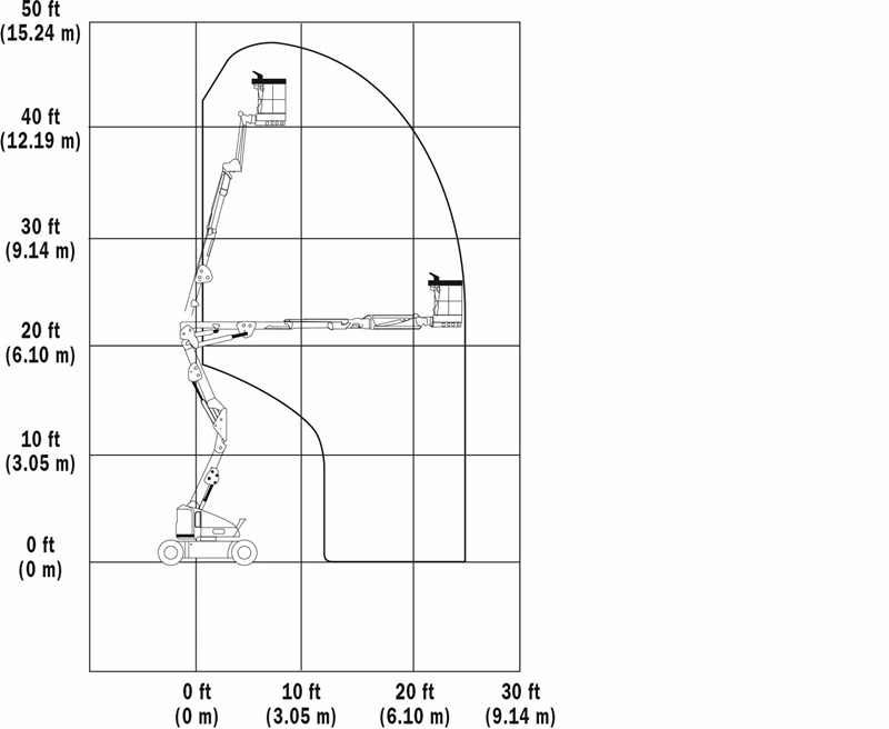 M400AJP雙動力曲臂式高空作業(yè)平臺工作范圍圖